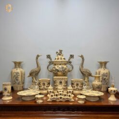 Bộ Đồ Thờ Gốm Chu Đậu Men Truyền Thống Bát Hương Đắp Nổi Tinh Xảo Ban 175cm – 217c
