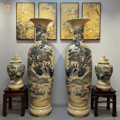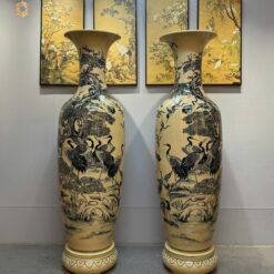 Lộc Bình Gốm Chu Đậu 1M75 Hoạ Tiết Bách Hạc Quần Tùng Men Gốm Truyền Thống