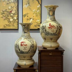 ComBo Lộc Bình 1M75 Gốm Chu Đậu Tứ Cảnh Bốn Mùa & Cặp Bình Phú Quý H65 Vẽ Vàng 24K Tinh Xảo