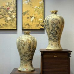 Combo Gốm Chu Đậu Lộc Bình 1M65 Tứ Cảnh Sơn Thuỷ & Bình Vôi Vẽ Vàng 24K Tinh Xảo