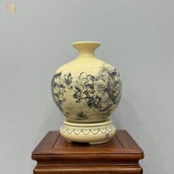 Bình hút lộc H30 gốm chu đậu hoạ tiết tứ cảnh Hà Nội men gốm truyền thống HLTC09