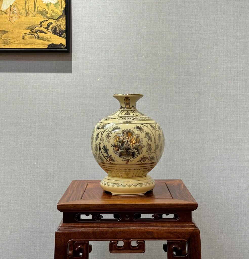 • Bình Hút Lộc Gốm Chu Đậu Hoa Mẫu Đơn Vẽ Vàng 24K từ làng nghề truyền thống Chu Đậu nổi tiếng của Việt Nam, là món quà tặng vô cùng ý nghĩa phù hợp trong nhiều trường hợp cụ thể như: Biếu Tặng Sếp – Lãnh Đạo, Tân Gia, Tặng Doanh Nghiệp, Hội Nghị.