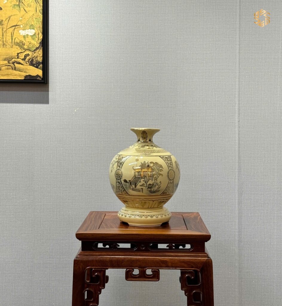 - Bình Hút Lộc Gốm Chu Đậu hoạ tiết tứ cảnh Hà Nội Vẽ Vàng 24K từ làng nghề truyền thống Gốm Chu Đậu nổi tiếng của Việt Nam, là món quà tặng vô cùng ý nghĩa phù hợp trong nhiều trường hợp cụ thể như: Biếu Tặng Sếp – Lãnh Đạo, Tân Gia, Tặng Doanh Nghiệp, Hội Nghị.