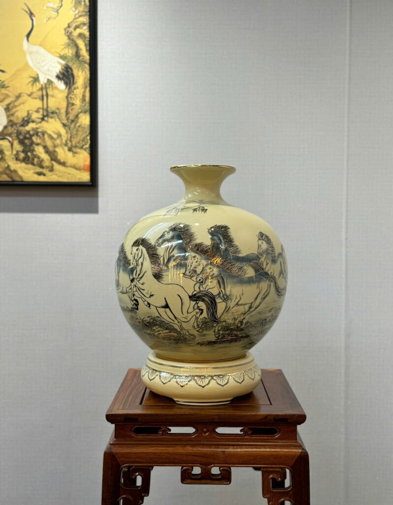 Bình hút lộc H45 gốm chu đậu hoạ tiết Mã Đáo Thành Công nghĩa vẽ vàng 24k- Nghệ Nhân NN06