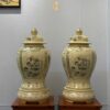 Bình Phú Quý Gốm Chu Đậu H65 hoạ tiết Tứ Cảnh Sơn Thuỷ vẽ vàng 24K BPQST09