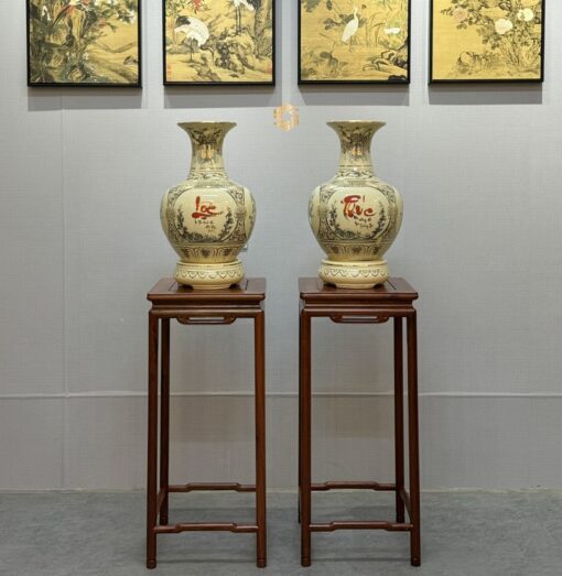 Bình Phú Quý H35 gốm chu đậu hoạ tiết tứ cảnh chữ lộc ý nghĩa vẽ vàng 24k PQTC01
