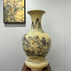 Bình Phú Quý H50 gốm chu đậu hoạ tiết tùng hạc vẽ vàng 24k PQTH03