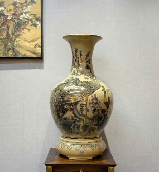 Bình Phú Quý H65 gốm chu đậu hoạ tiết chim công hoa đào 24k PQCĐ04