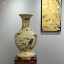 Bình Phú Quý Gốm Chu Đậu H85 hoạ tiết Tùng Hạc vẽ vàng 24k PQTH05