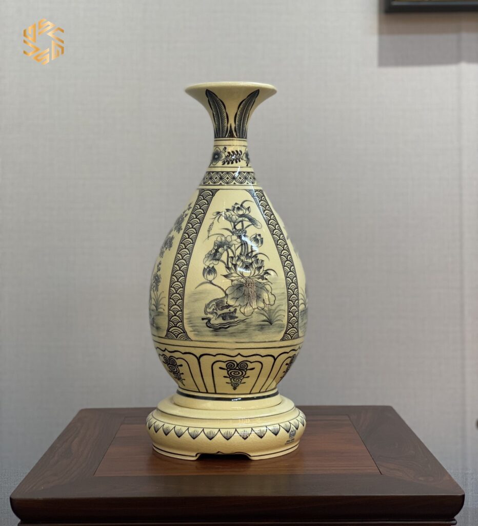 • Bình Tỳ Bà có ý nghĩa cho sự sung túc về tiền tài, phát tài, phát lộc. Bình còn tượng trưng cho sự sinh sôi nảy nở, đem đến những điều mới mẻ, tốt đẹp và may mắn. Thiết kế bình có cấu trúc hình chiếc đàn tỳ bà có miệng bình loe tròn tượng trưng cho khả năng hút tài lộc may mắn. Cổ bình thuôn dài có khả năng làm “nút thắt” giúp tiền của không hao hụt. Thân bình phình to giữ tiền giữ lộc ổn định dài lâu. Sản phẩm men gốm truyền thống từ làng nghề truyền thống Gốm Chu Đậu nổi tiếng của Việt Nam, là món quà tặng vô cùng ý nghĩa phù hợp trong nhiều trường hợp cụ thể như: Biếu Tặng Sếp – Lãnh Đạo, Tân Gia, Tặng Doanh Nghiệp, Hội Nghị.