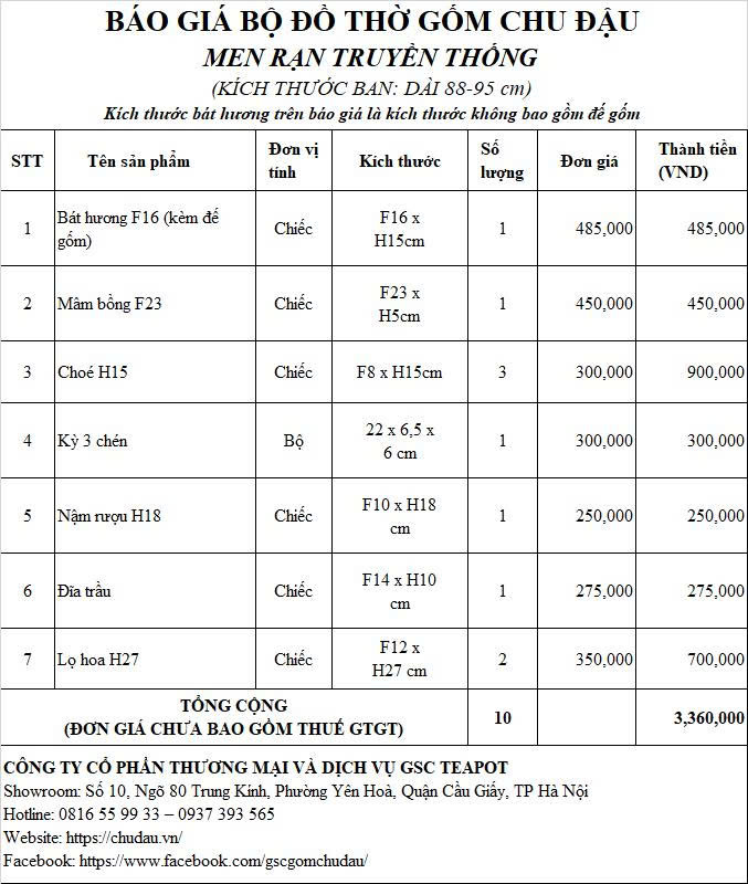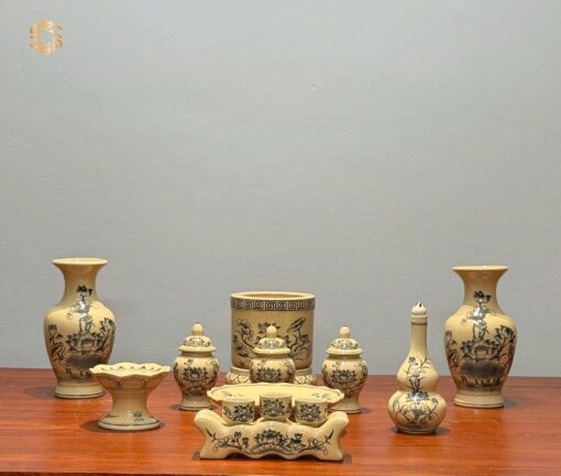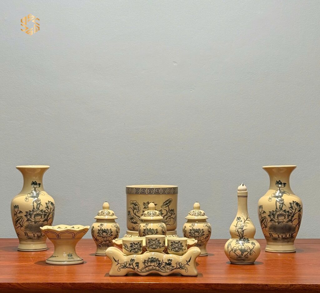 Bộ Đồ Thờ Gốm Chu Đậu Hoạ Tiết Hoa Sen Men Truyền Thống Ban Dài 88cm – 95cm.