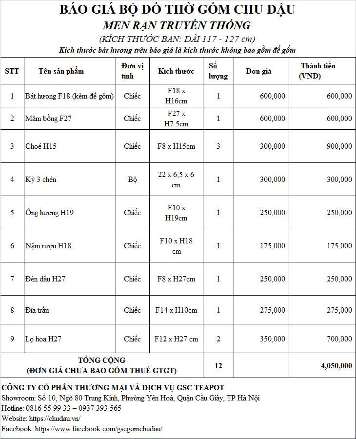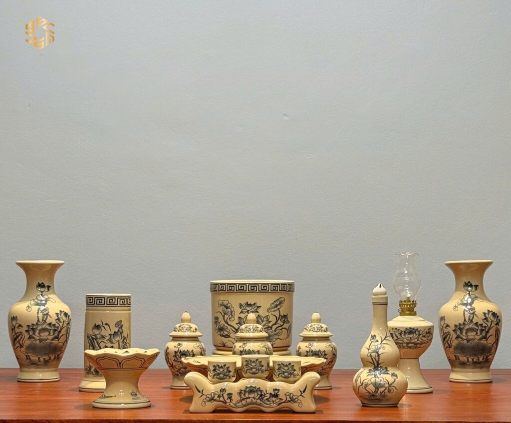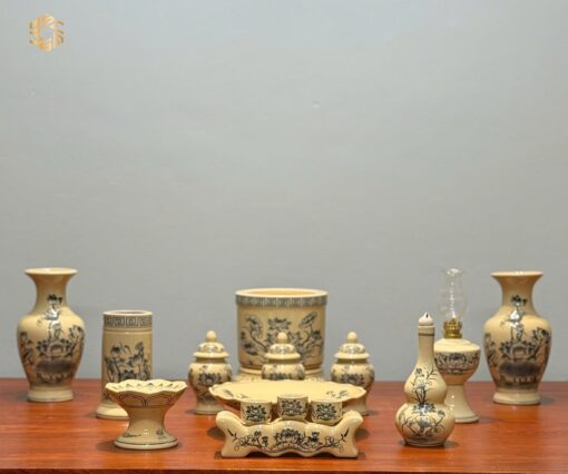 Bộ Đồ Thờ Gốm Chu Đậu Hoạ Tiết Hoa Sen Truyền Thống Ban 117cm – 127cm