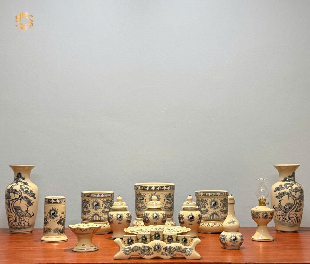 Bộ Đồ Thờ Gốm Chu Đậu Hoạ Tiết Rồng Men Truyền Thống Ban Dài 157cm
