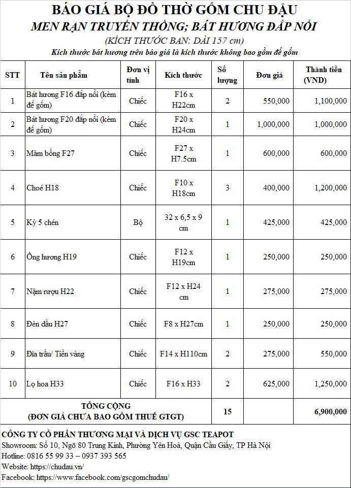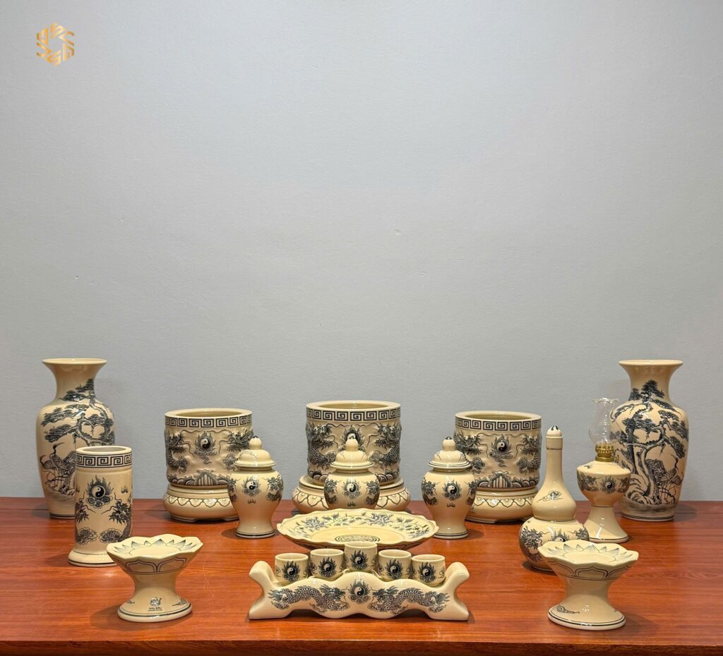 Bộ Đồ Thờ Gốm Chu Đậu Men Truyền Thống Bát Hương Đắp Nổi Tinh Xảo Ban 157cm