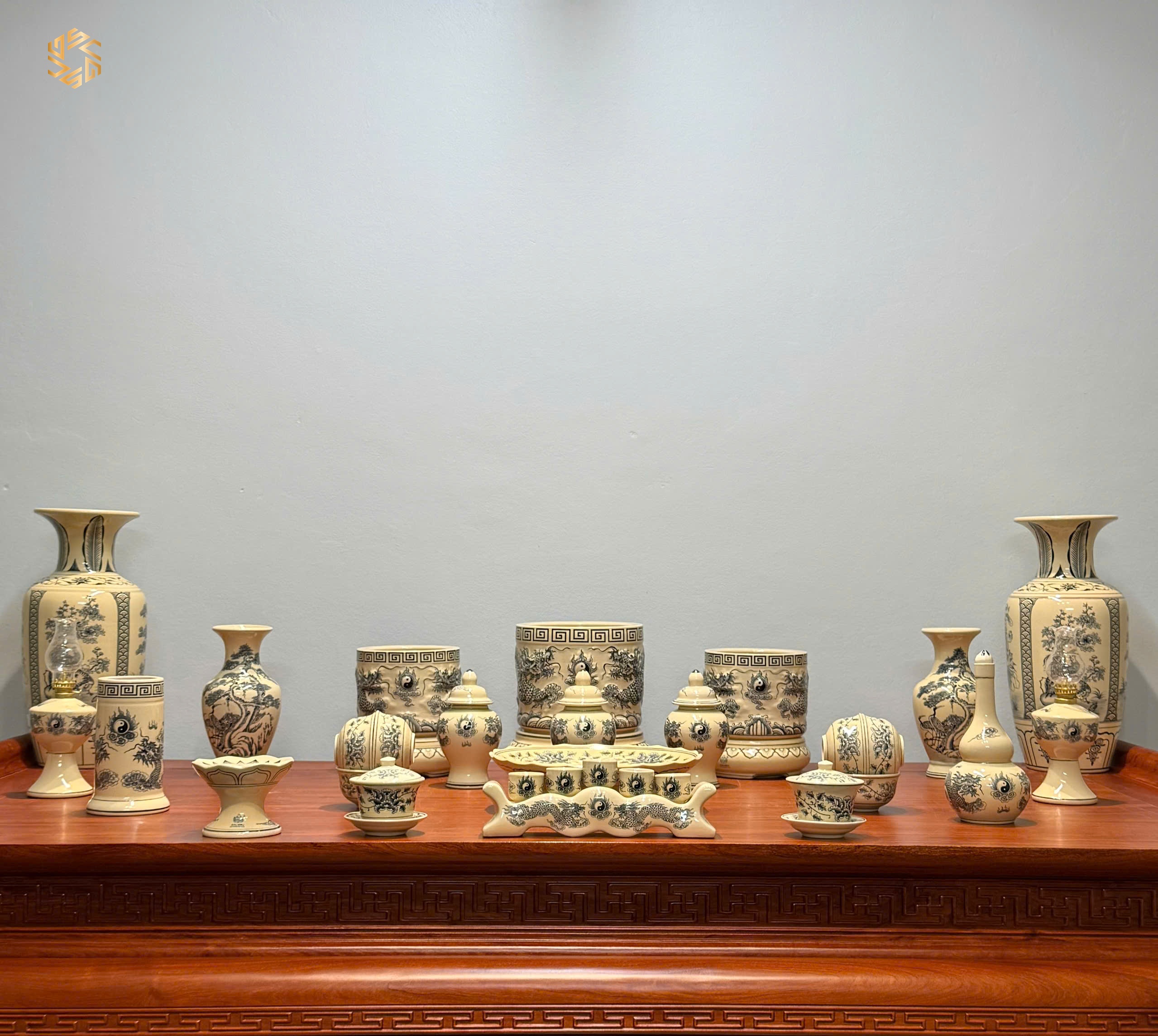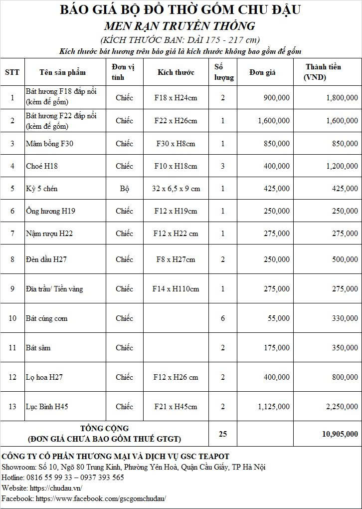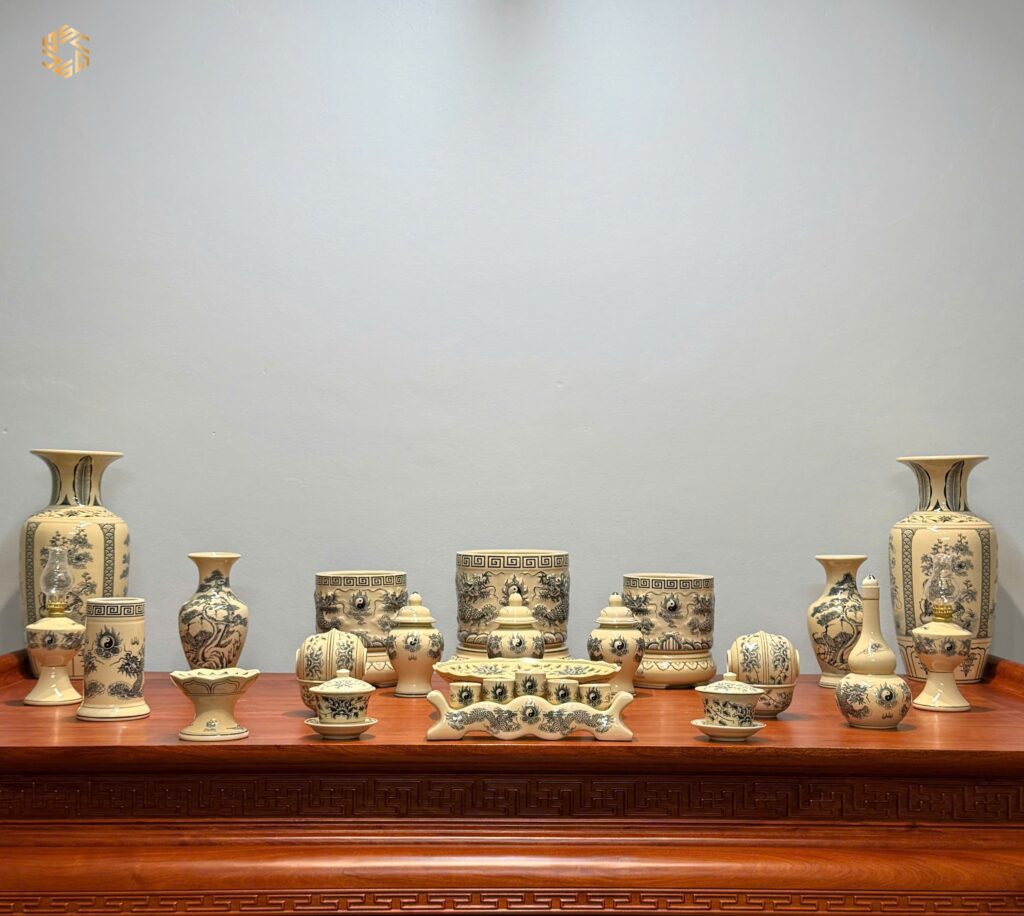 Bộ Đồ Thờ Gốm Chu Đậu Men Truyền Thống Bát Hương Đắp Nổi Tinh Xảo Ban 175cm – 217c