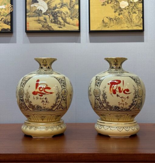 Cặp Bình Hút Lộc Chữ Phúc – Chữ Đức H30 Vẽ Vàng 24K Tinh Xảo