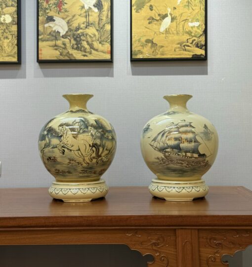 Cặp Bình Hút Lộc Mã Đáo Thành Công – Thuận Buồm Xuôi Gió H30 Vẽ Vàng 24K Tinh Xảo