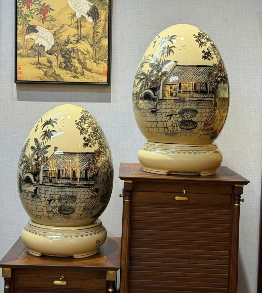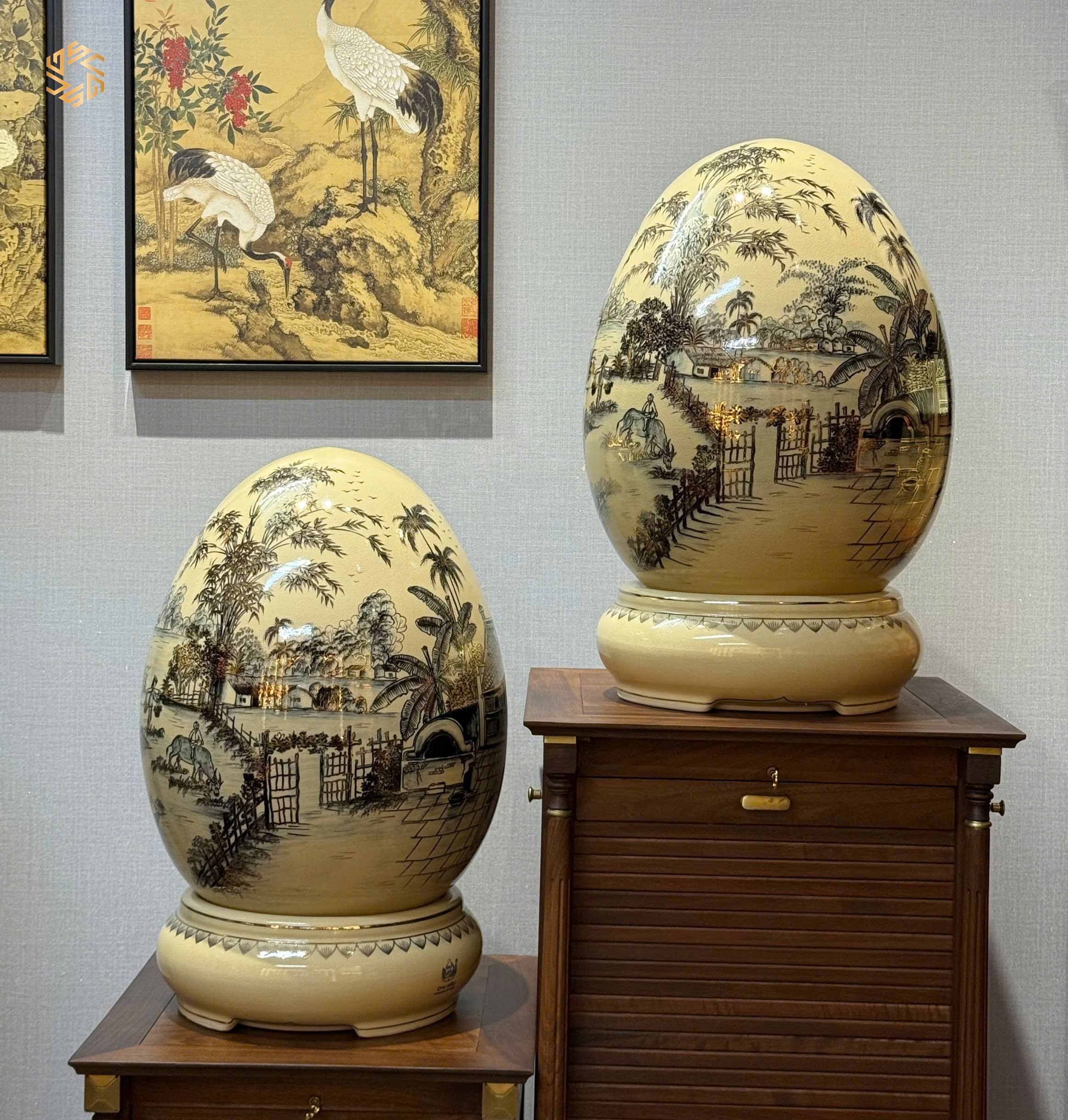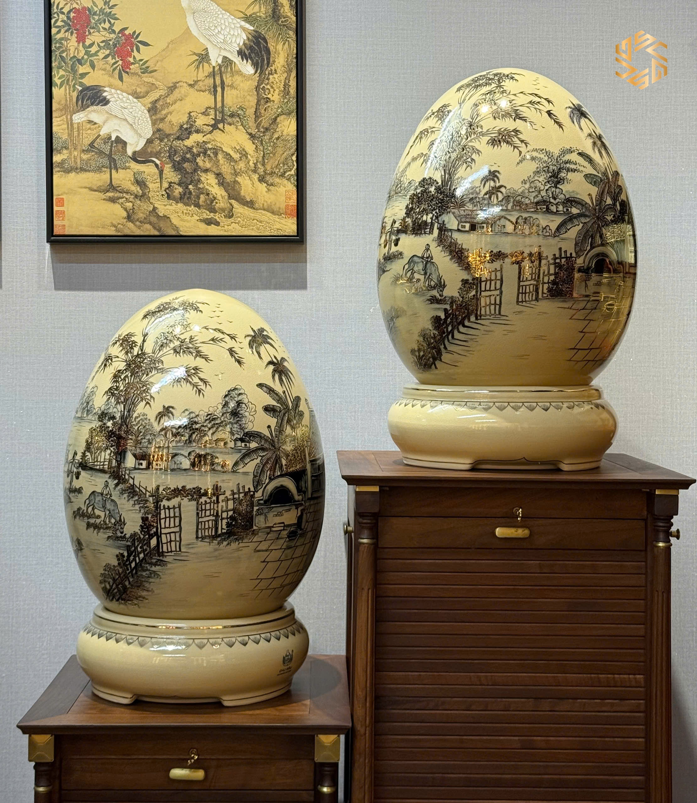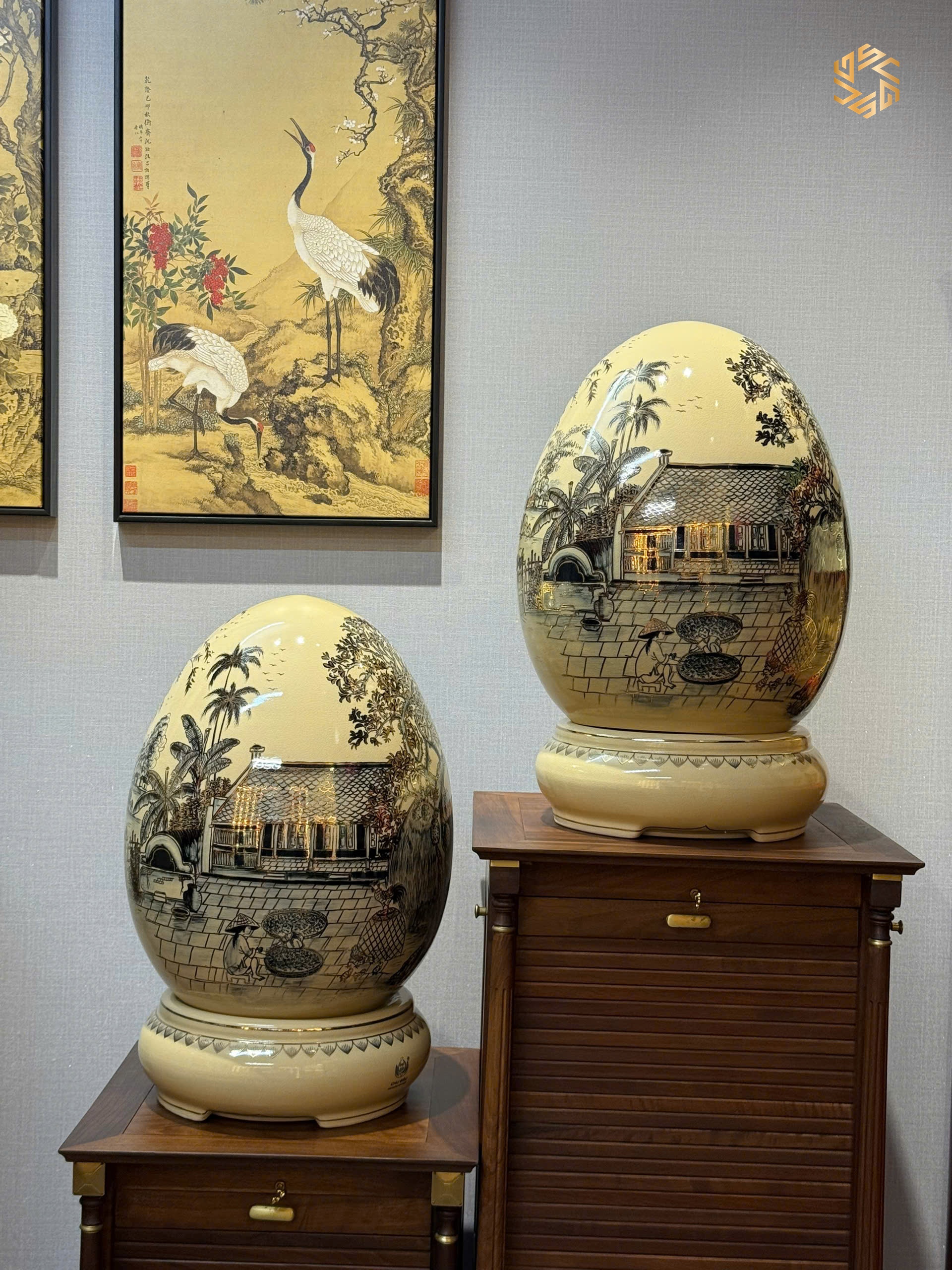 Cặp Bình Trứng Tài Lộc H45 Vẽ Vàng 24K Tinh Xảo Phiên Bản Nghệ Nhân