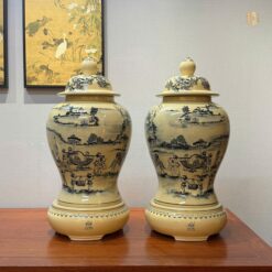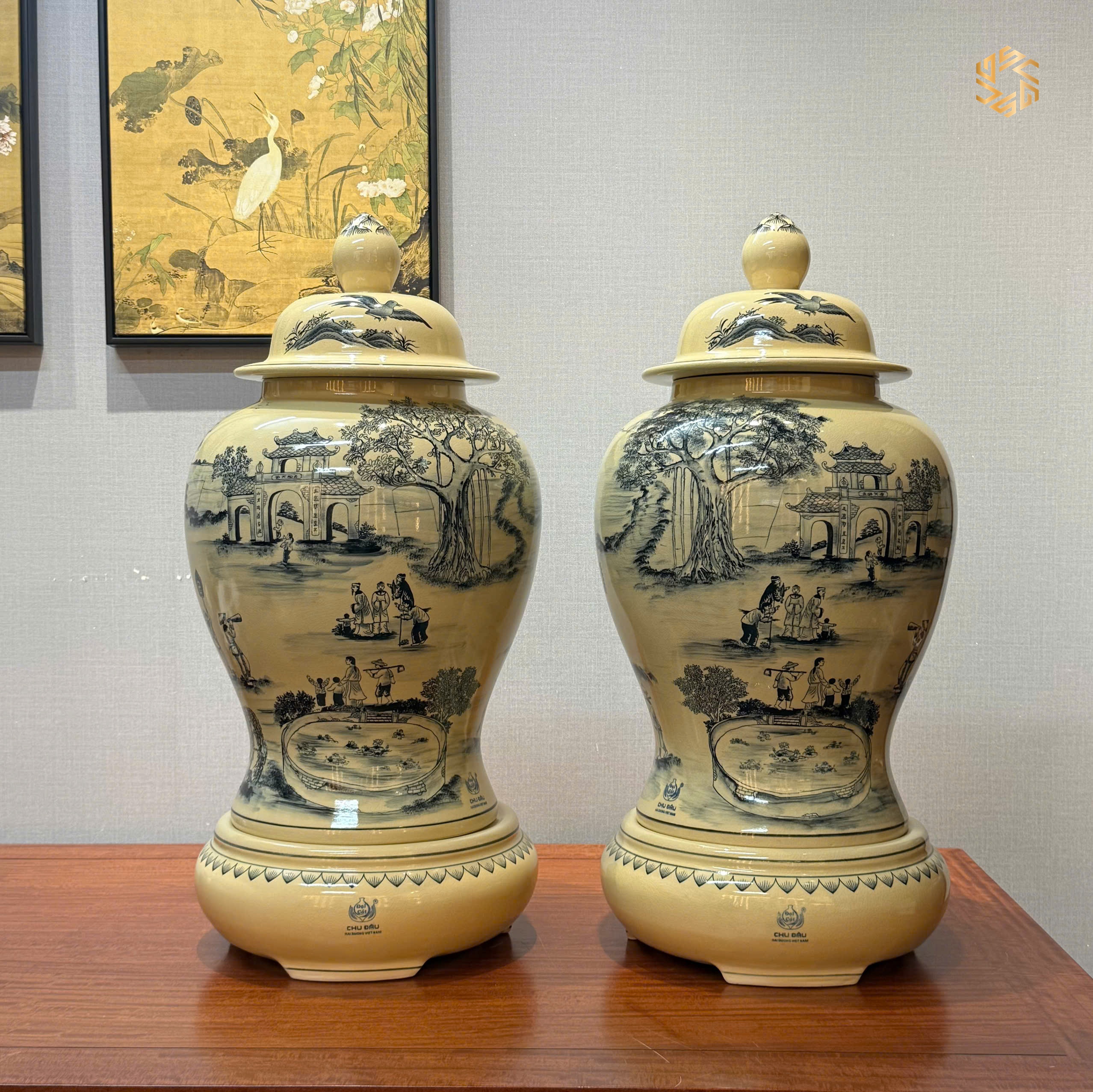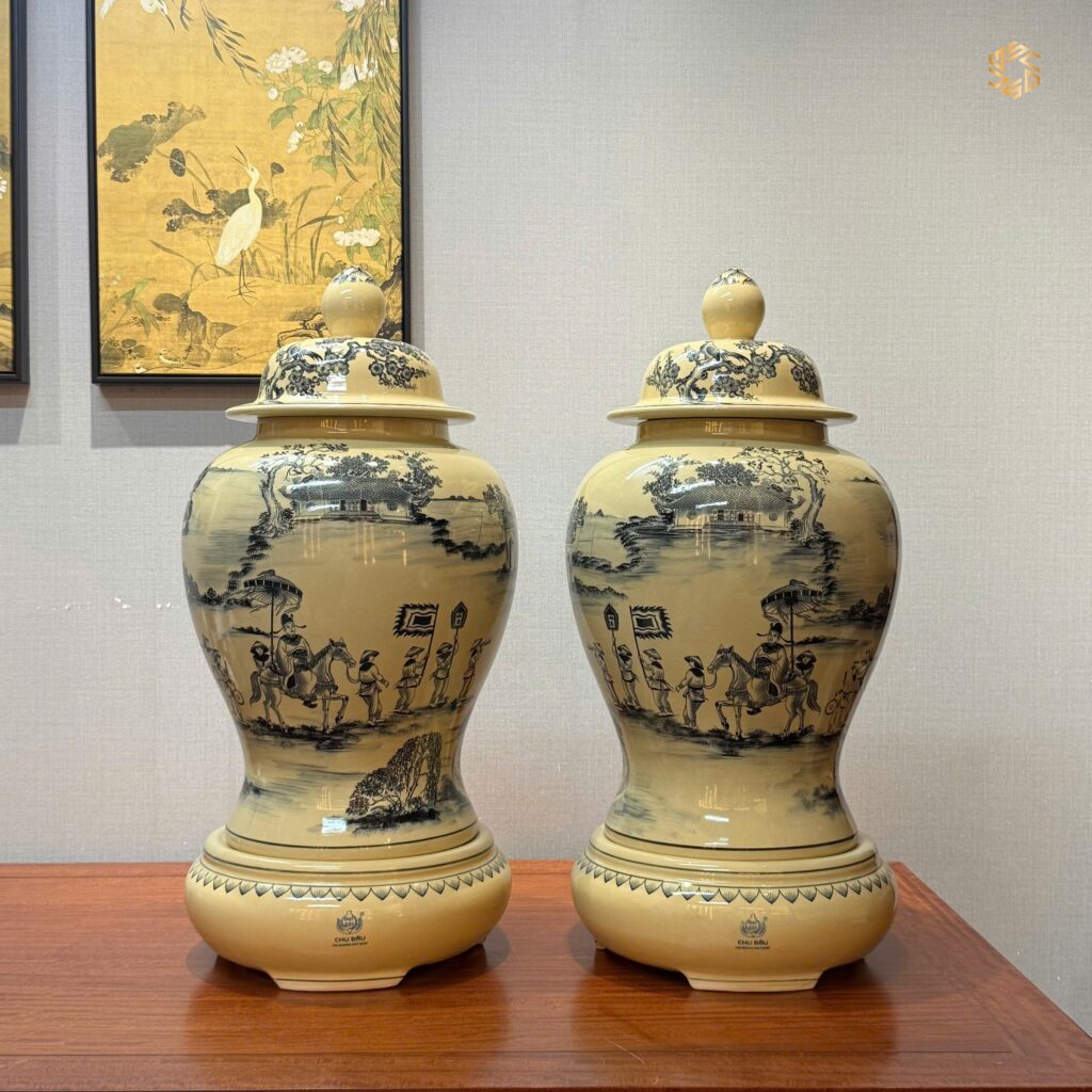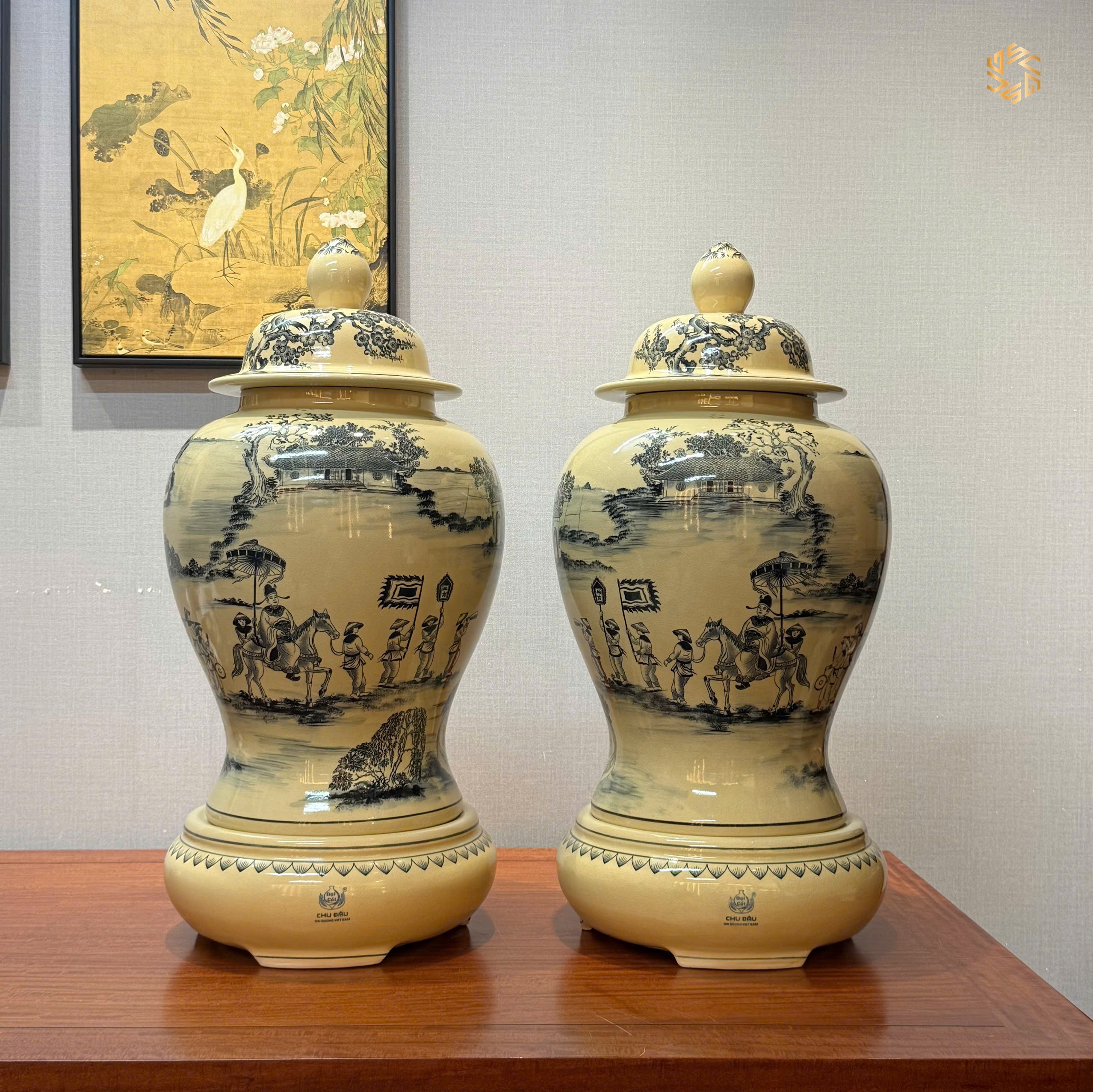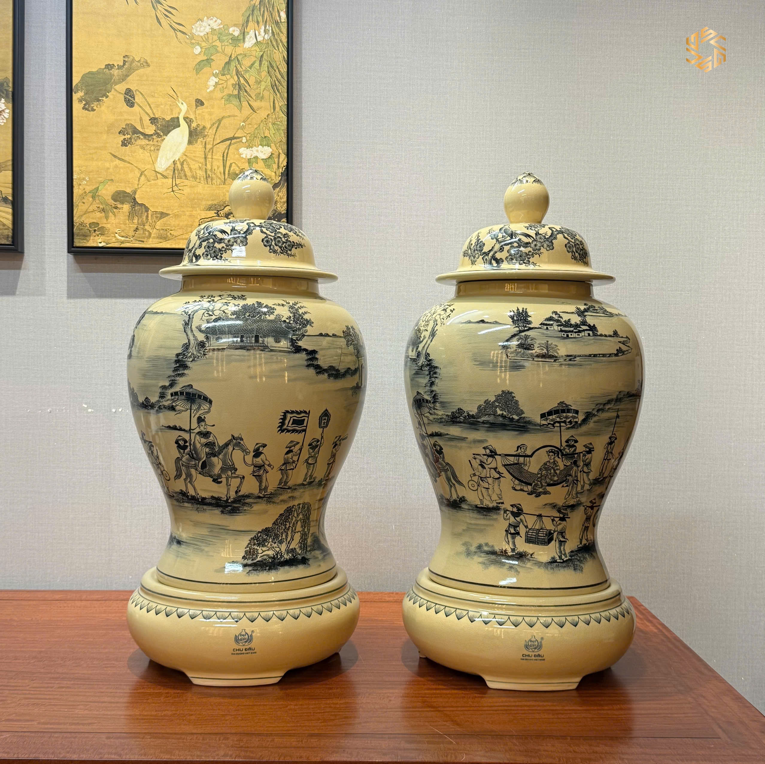 Cặp Choé H60 Hoạ Tiết Vinh Quy Bái Tổ Men Gốm Truyền Thống