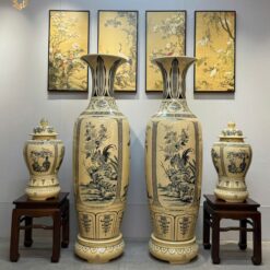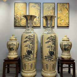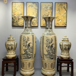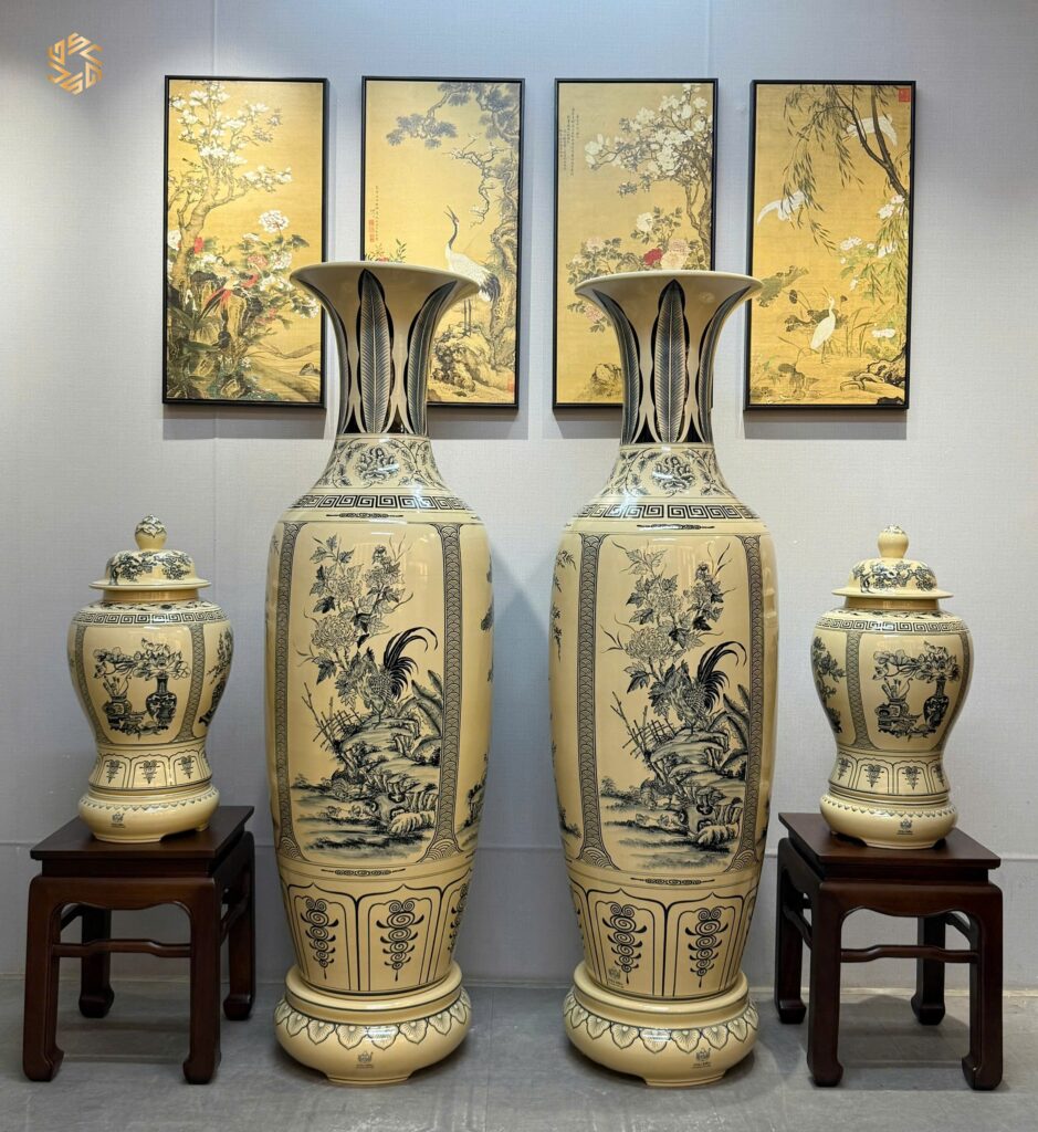 ComBo Lộc Bình Gốm Chu Đậu 1M65 Hoạ Tiết Tứ Cảnh Bốn Mùa & Cặp Choé Cổ Đồ Men Gốm Truyền Thống
