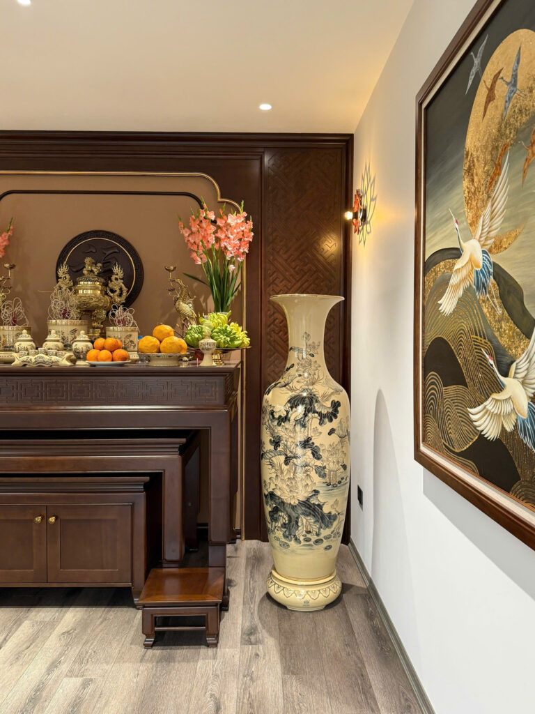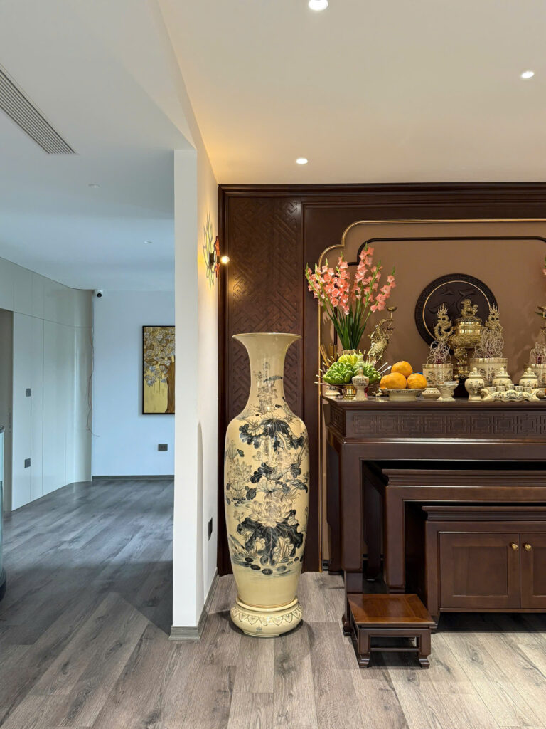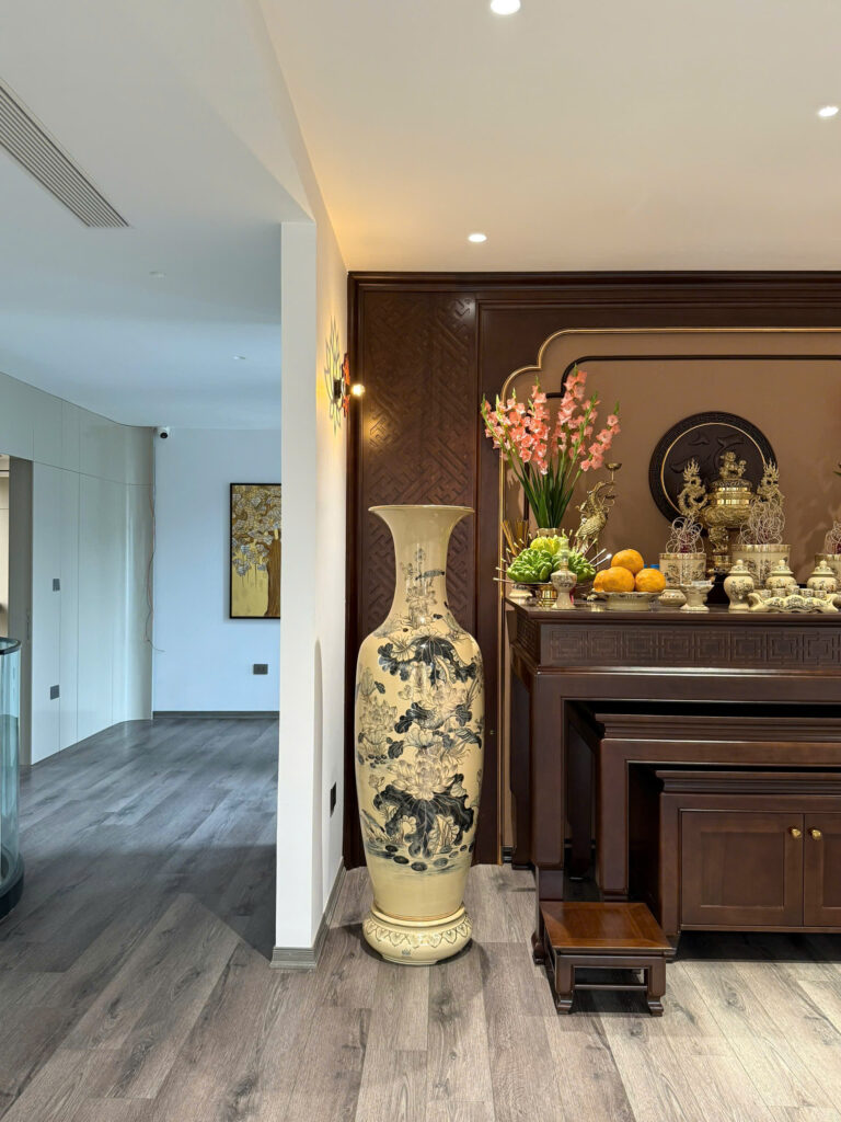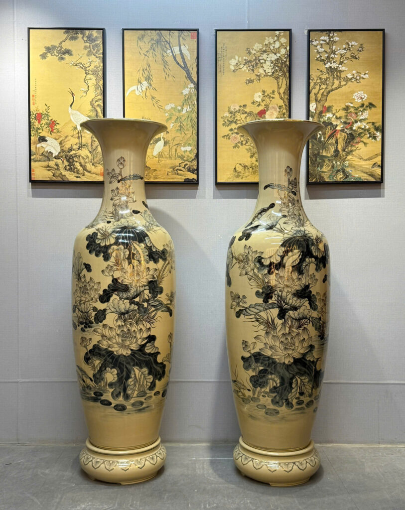 Lộc Bình Gốm Chu Đậu 1M55 Hoạ Tiết Hoa Sen Vẽ Vàng 24K Tinh Xảo