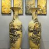 Lộc Bình Gốm Chu Đậu H120 hoạ tiết Sơn Thuỷ Hữu Tình vẽ vàng 24k LBST01
