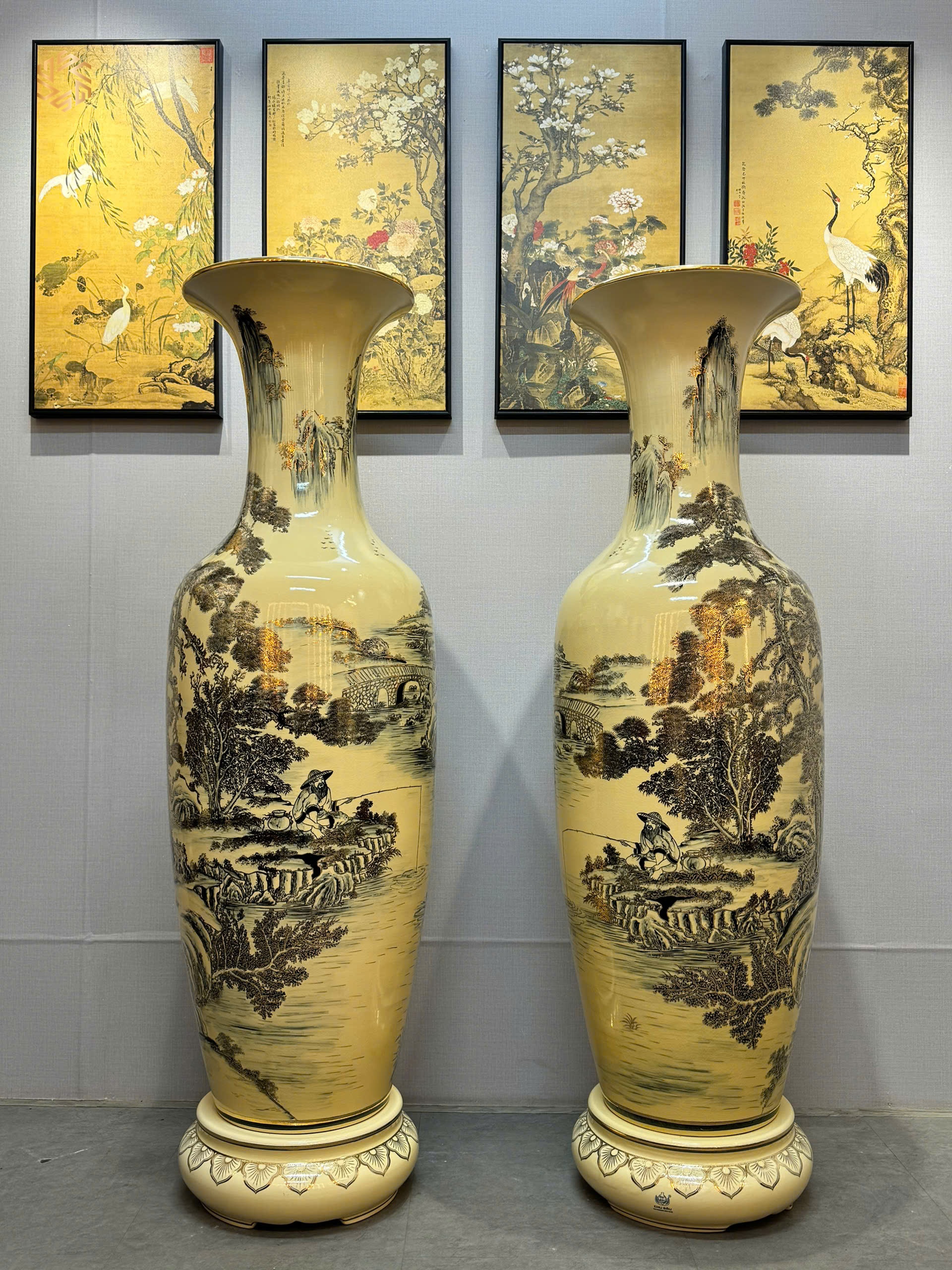Lộc Bình H150 gốm chu đậu hoạ tiết Sơn Thuỷ Hữu Tình vẽ vàng 24k LBST03