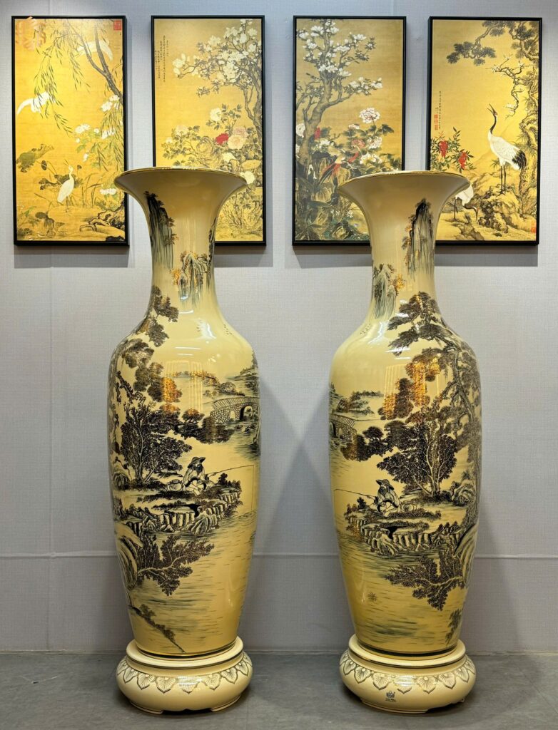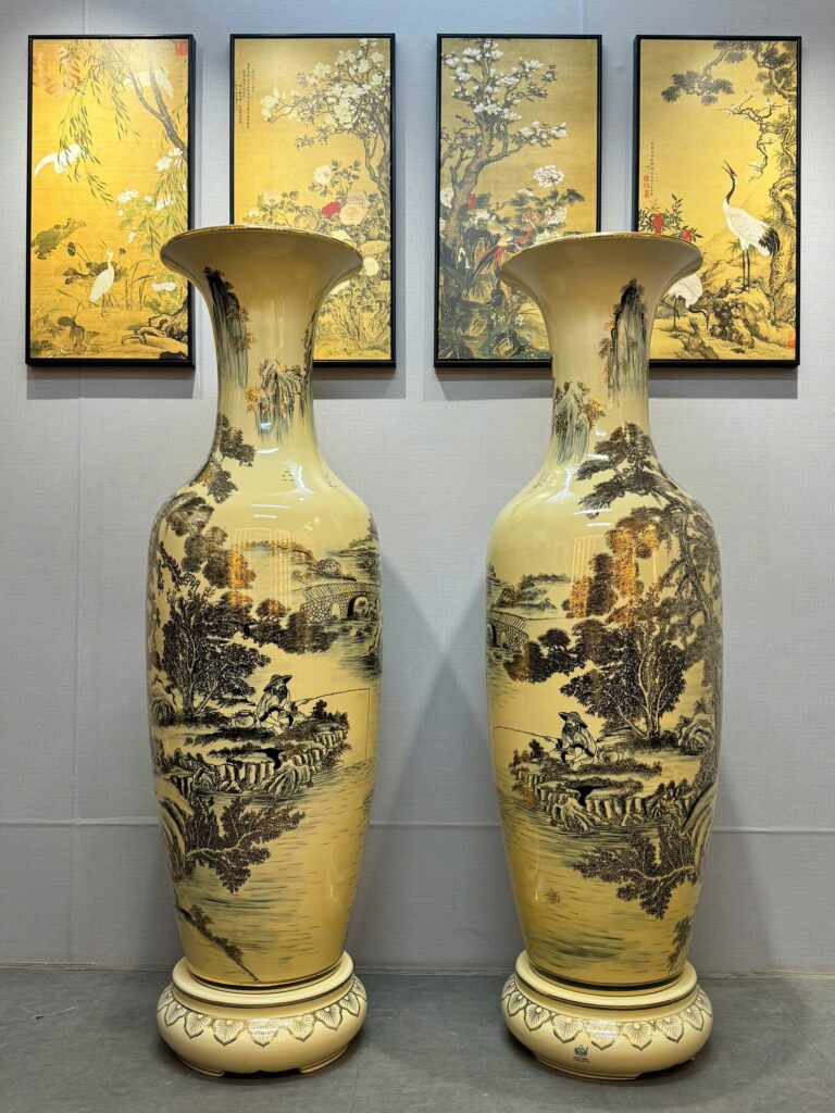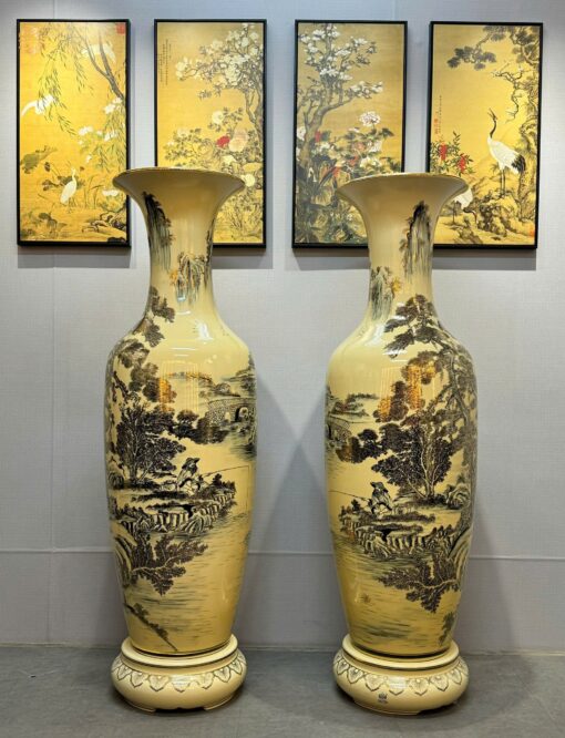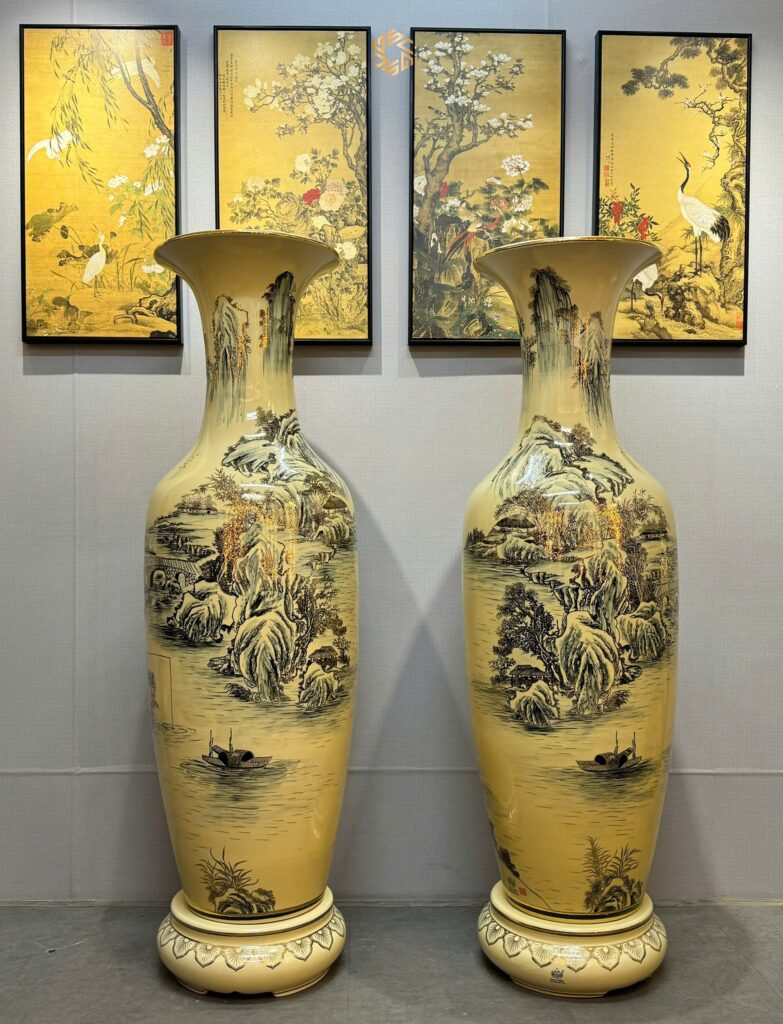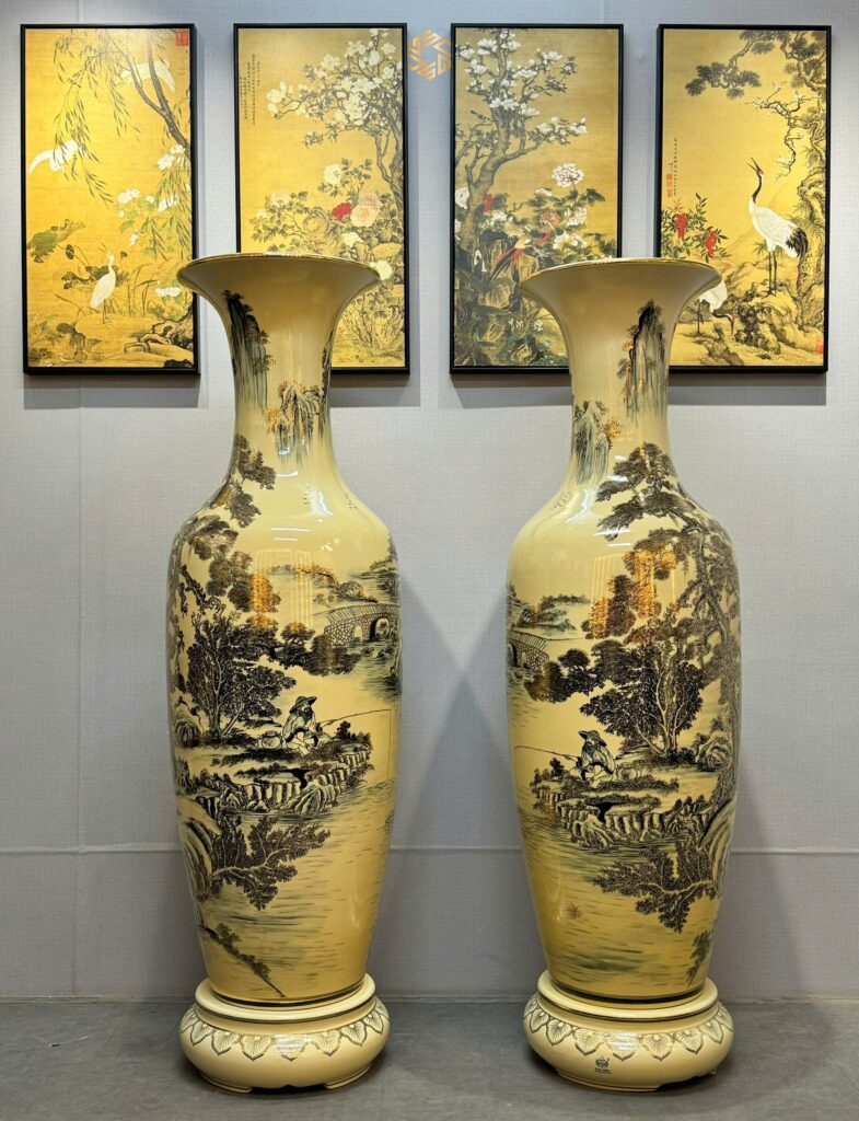 Lộc Bình H160 gốm chu đậu hoạ tiết Sơn Thuỷ Hữu Tình vẽ vàng 24k LBST04