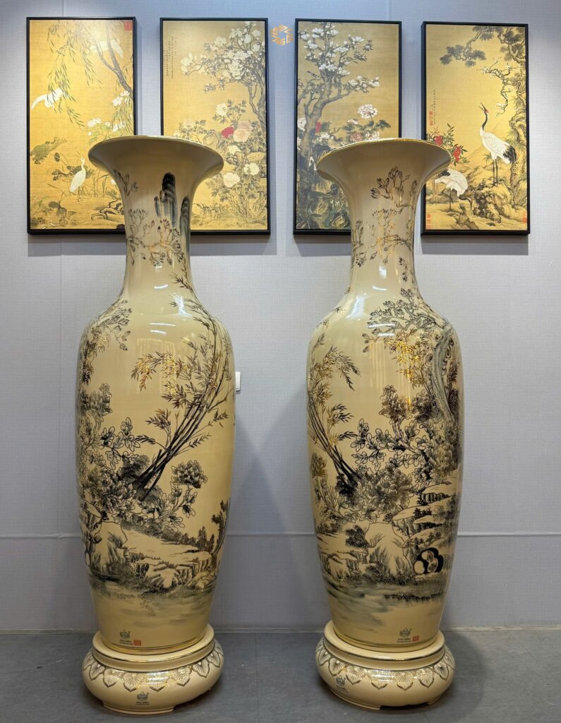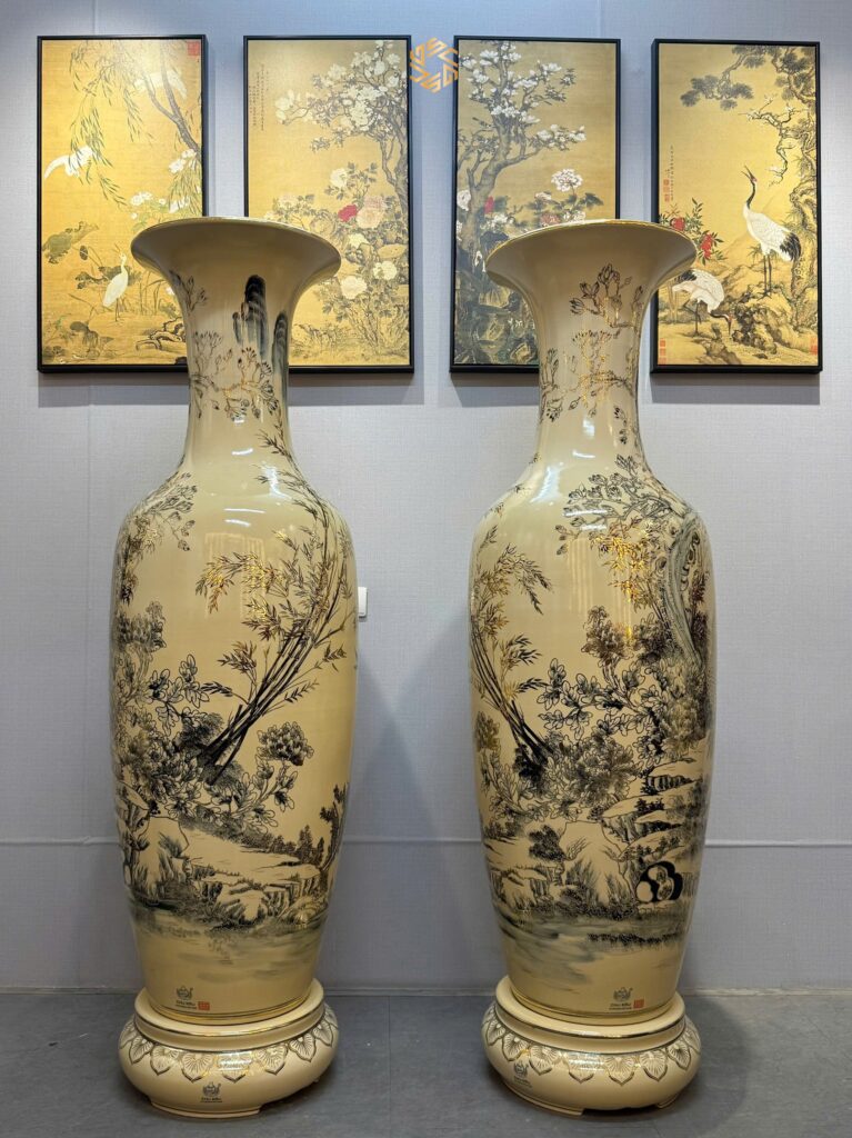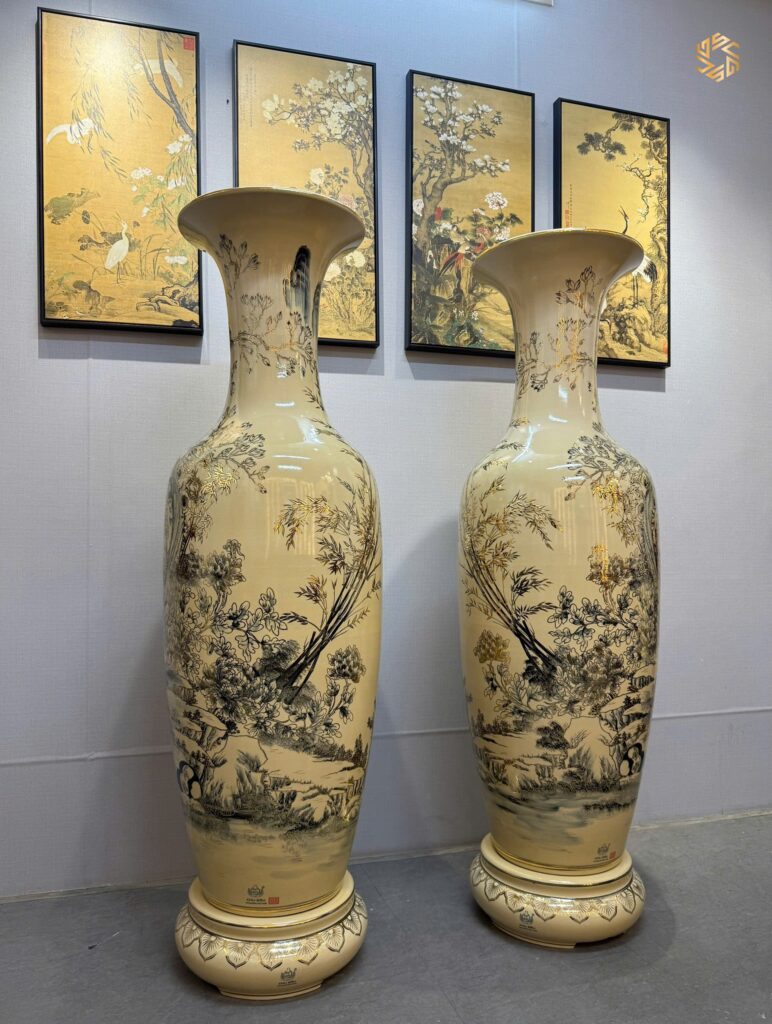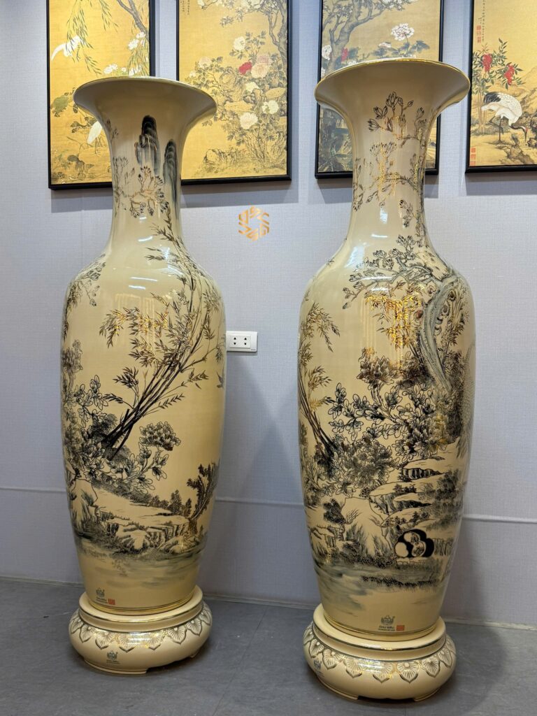 - Chất liệu: Gốm vẽ vàng 24K, thủ công hoàn toàn. Phiên bản nghệ nhân làng nghề GỐM CHU ĐẬU.