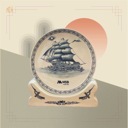 Quà Tặng Gốm Chu Đậu Đĩa Cảnh Truyền Thống F23 Ngân Hàng MSB LOGO Theo Yêu Cầu