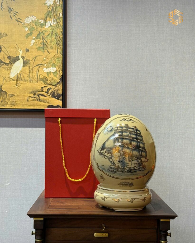 Quà Tặng Gốm Chu Đậu Trứng Tài Lộc Vẽ Vàng 24K H25, Thiết Kế Theo Yêu Cầu, Nâng Tầm Sự Kiện