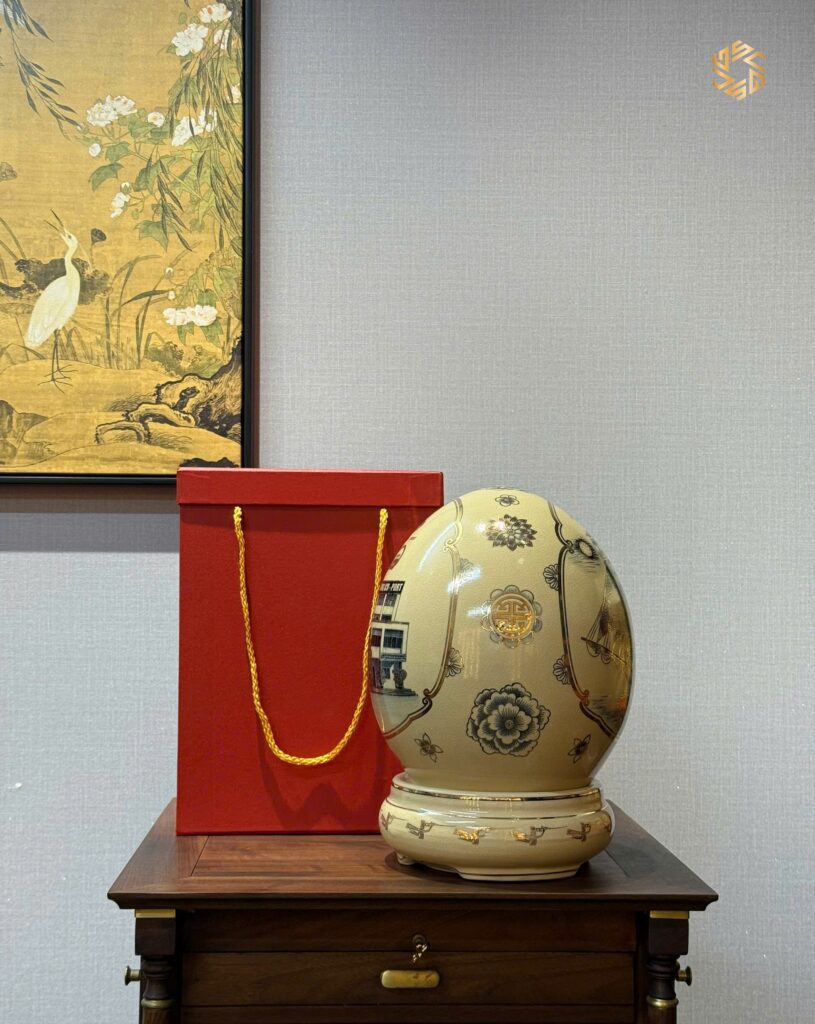 Quà Tặng Gốm Chu Đậu Trứng Tài Lộc Vẽ Vàng 24K H25, Thiết Kế Theo Yêu Cầu, Nâng Tầm Sự Kiện